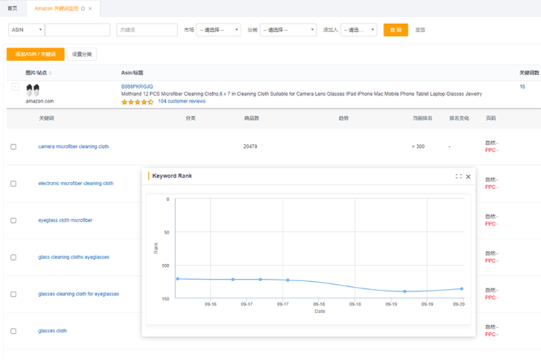 Monitor the natural ranking of ASIN keywords and the ranking of PPC advertising, and compare the trend of the curve to provide data for listing optimization。