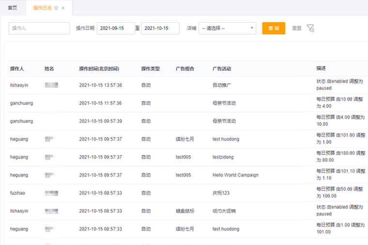 The operation log tracks and records the operator and time of each advertisement creation, adding keywords, changing bids, etc.; supports SP, SD, SB advertising management, and related advertising reports。