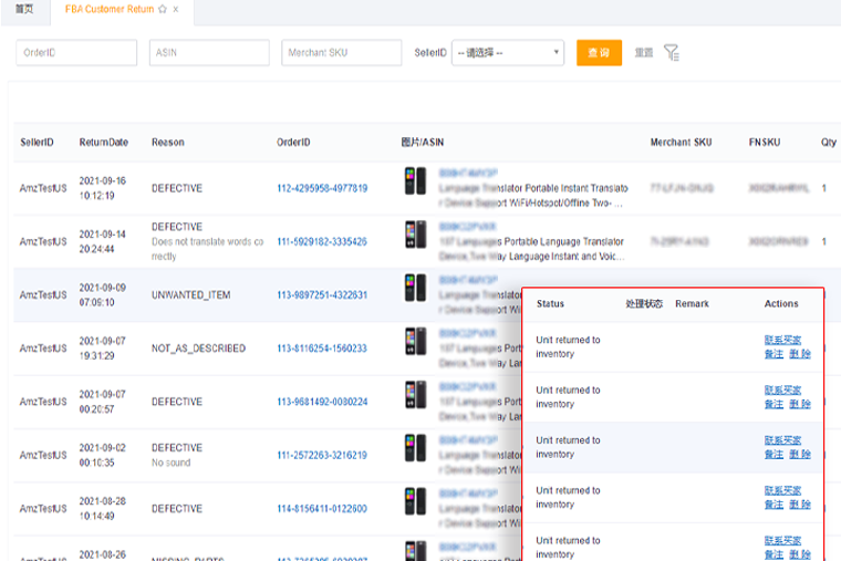 The FBA return report records the reason for return, analyzes the return rate, and provides data support for improving product quality。